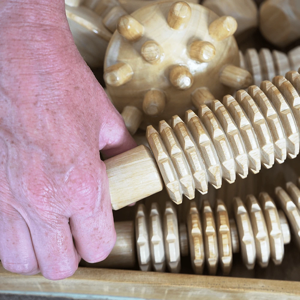 Een massagetechniek met speciaal ontworpen houten instrumenten. Het stimuleert de doorbloeding en bevordert de afvoer van afvalstoffen via het lymfestelsel. Daardoor krijg je een vermindering van cellulite en een verbetering van de huidstructuur en de contouren van je lichaam. Het beste resultaat wordt behaald bij een kuur van 10 weken 1x per week. Daarna is het advies om het 1 x per maand bij te houden. Een kuur van 10 weken kan alleen telefonisch geboekt worden.